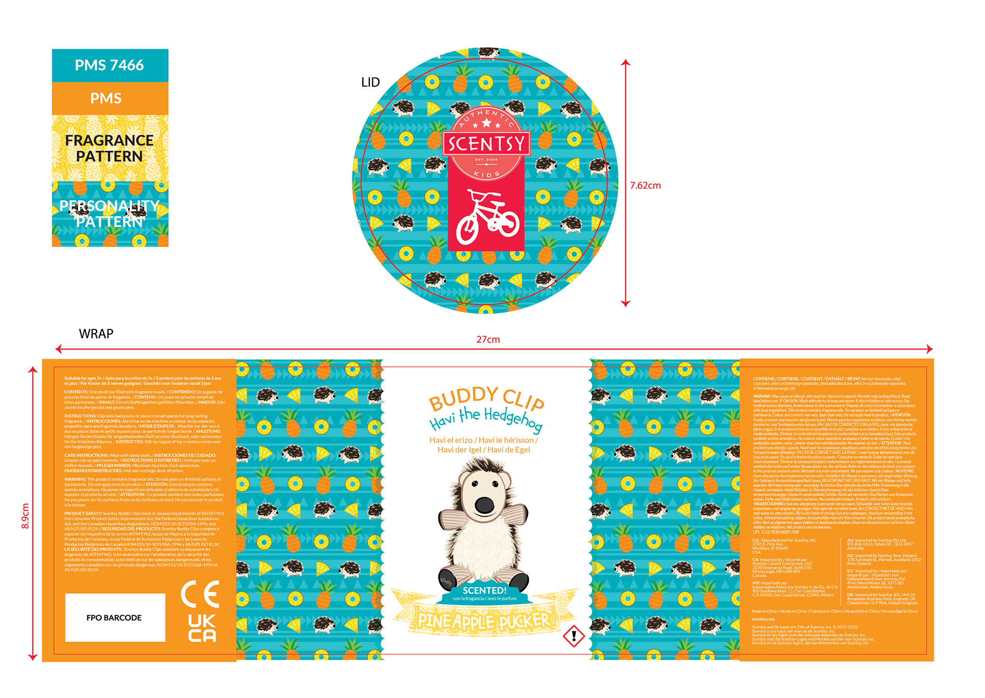Throughout the year, Scentsy would release different stuffed scented toys for kids called Buddies. Most of these are limited time offers that are only available for a short amount throughout the year. These Buddies range from full-sized that come in a box to mini ones that come in a plastic cylinder. Each Buddy comes with their own specific pattern that is catered specially for the Buddy. There are no color limitations on these patterns.